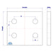 | Hoogte | Breedte | Dikte | Gat diameter | Aantal gaten | Maat A | Maat B |
